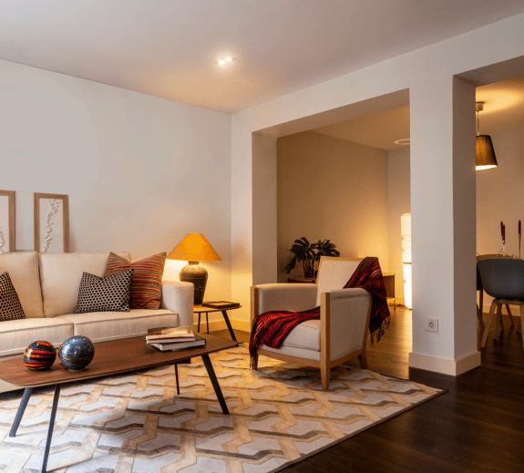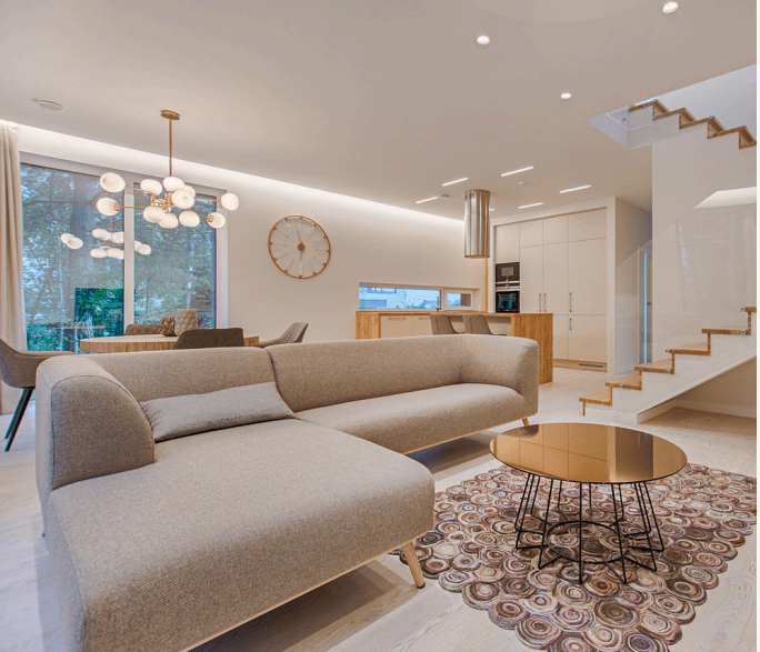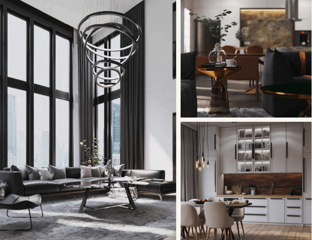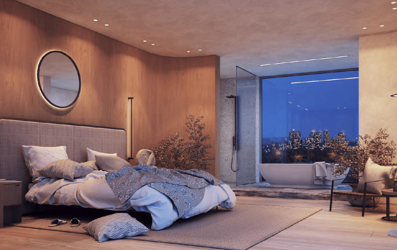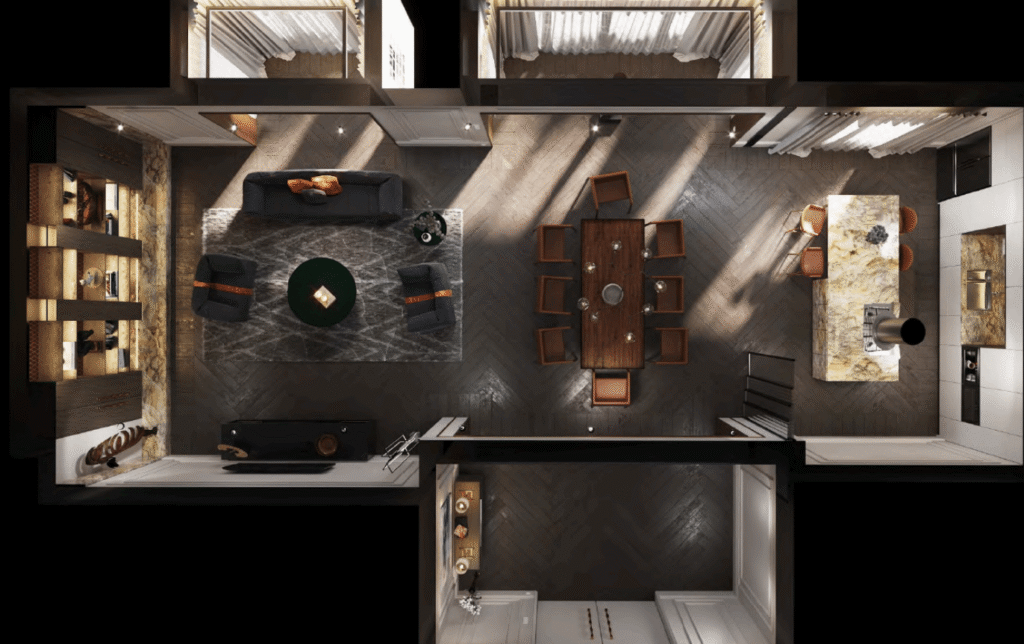 İç mekan tasarımımız, fonksiyonellik ve estetiği bir araya getirerek günlük yaşamı kolaylaştırmayı hedefliyor. Açık plan çözümler, doğal ışığın maksimum kullanımını sağlarken mekanlar arasında akıcı bir geçiş sunuyor. Malzeme ve renk seçimlerinde modern ve zamansız bir estetik tercih edildi; ahşap, taş ve nötr tonlar ile sıcak ve davetkar bir atmosfer oluşturuldu. Teknoloji entegrasyonu, kullanım kolaylığını artırırken yaşam alanlarını daha akıllı ve verimli hale getiriyor. Mahremiyet ve konfor, her odada ön planda tutuldu; kişisel alanlar sessiz ve dinlendirici bir ortam sunarken, ortak yaşam alanları sosyal etkileşim için uygun şekilde tasarlandı. Sonuç olarak iç mekan tasarımı, modern şehir yaşamına uyumlu.