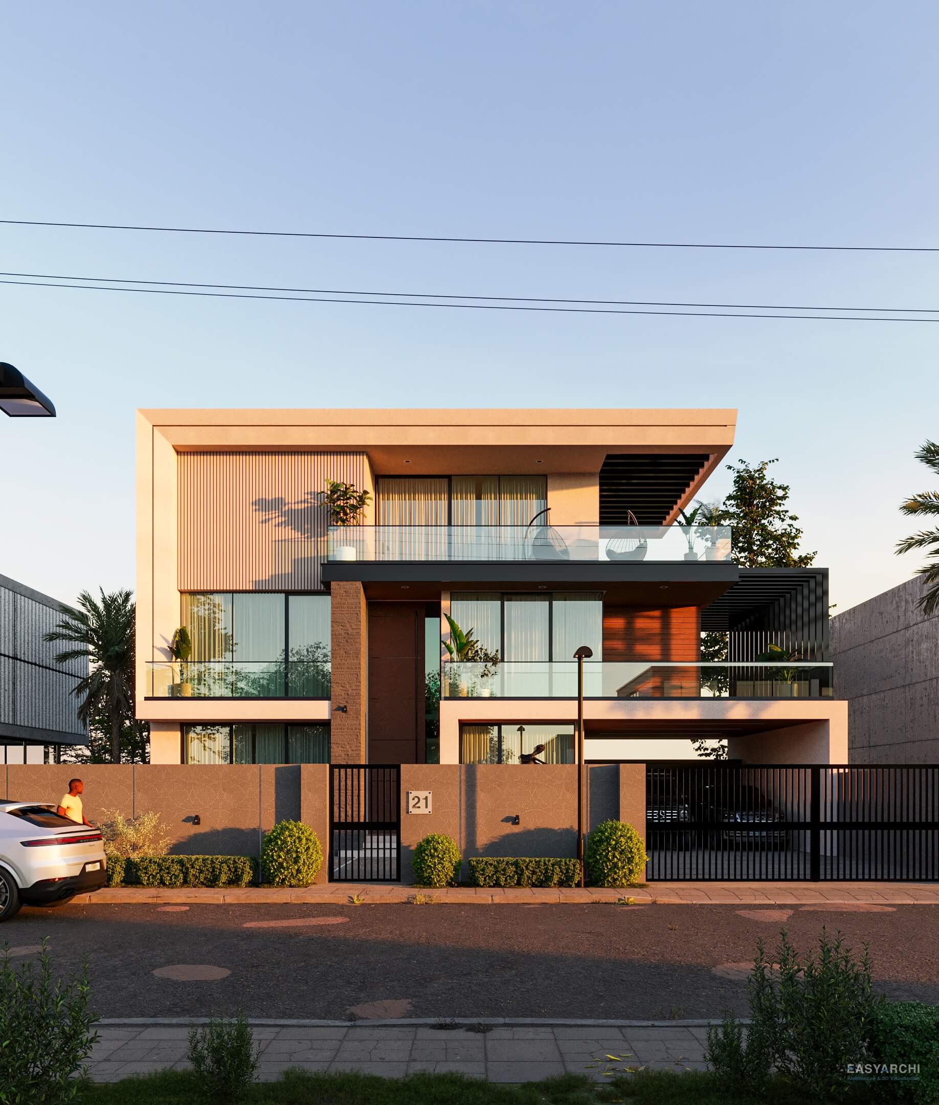 İç mekan tasarımımız, fonksiyonellik ve estetiği bir araya getirerek günlük yaşamı kolaylaştırmayı hedefliyor. Açık plan çözümler, doğal ışığın maksimum kullanımını sağlarken mekanlar arasında akıcı bir geçiş sunuyor. Malzeme ve renk seçimlerinde modern ve zamansız bir estetik tercih edildi; ahşap, taş ve nötr tonlar ile sıcak ve davetkar bir atmosfer oluşturuldu. Teknoloji entegrasyonu, kullanım kolaylığını artırırken yaşam alanlarını daha akıllı ve verimli hale getiriyor. Mahremiyet ve konfor, her odada ön planda tutuldu; kişisel alanlar sessiz ve dinlendirici bir ortam sunarken, ortak yaşam alanları sosyal etkileşim için uygun şekilde tasarlandı. Sonuç olarak iç mekan tasarımı, modern şehir yaşamına uyumlu.